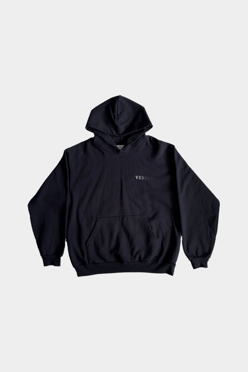 The Verses Gradient hoodie is made from high quality 14oz heavyweight fleece, that fits true to size and is unisex. The front features a gradient screen printed "VERSES:" logo, as well as the back of the hoodie. It also includes a kangaroo front pocket and ribbed cuffs. All of our hoodies are made in the U.S.A. and are preshrunk.